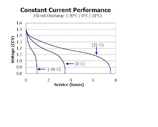 Although these batteries are in fact designed to keep operating down to about -18 C their service life is considerably shortened as you can see from this graph produced by Energizer (above).